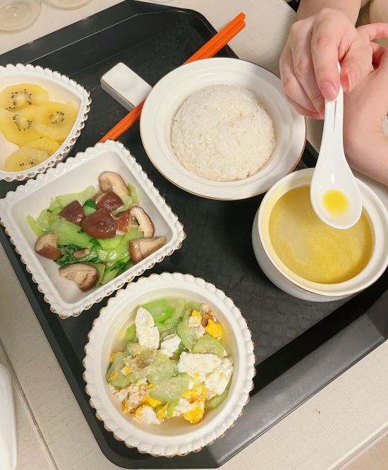 第七天月子餐(仅供参考)早餐玉米糯米粥+鹁鹁蛋+木耳百合山药辅餐红枣莲子银耳汤午餐白灼虾+土豆炖牛肉+生菜晚餐鸡蛋虾仁+排骨炖豆角+娃娃菜+配汤——椰子鸡