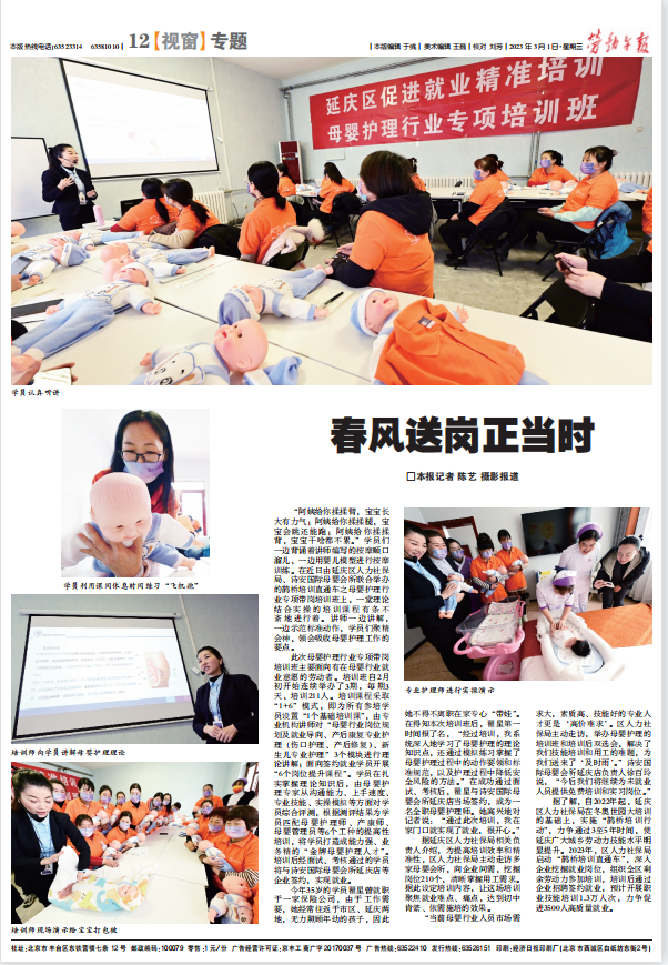 近日由延庆区人力社保局、诗安国际母婴会所联合举办的鹊桥培训直通车之母婴护理行业专项带岗培训班上,一堂理论结合实操的培训课程有条不紊地进行着。