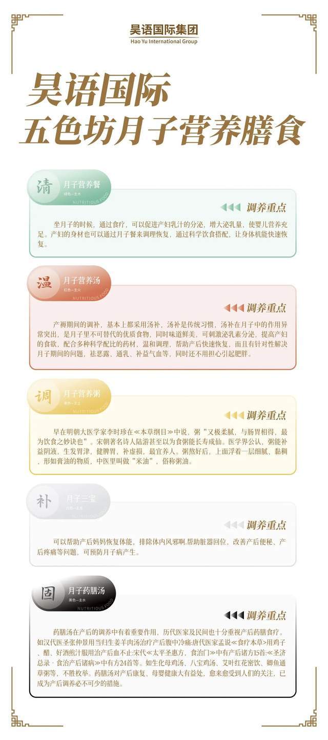 昊语国际集团五色坊月子营养膳食的模式不仅满足了这些点,在餐食配比上,用量也十分讲究,配比精准,在也不担心换厨师就换味了!
