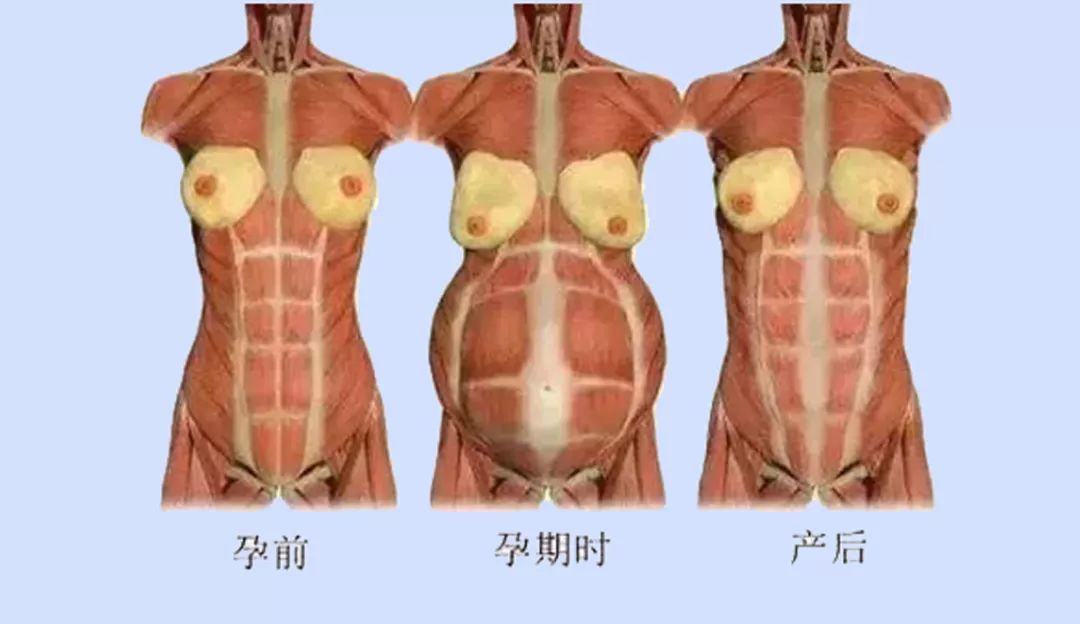 我们都知道,无论男女,肚子上都有8块腹肌。这8块腹肌之间,有一条白色的组织叫做腹白线,腹白线就像拉链一样,把肌肉拉在一起。在怀孕的时候,体内的激素会让身体的肌肉组织变得松弛,这个“拉链”也因此松了,加上日渐膨胀的子宫,直接把肌肉群给撑开了,肚子的中间就出现了一片空隙。