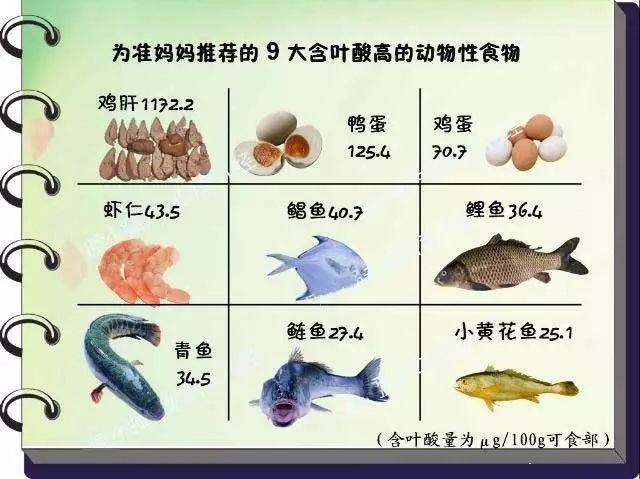 备孕时,双方要注意饮食多样化,加强营养。要以叶酸为主,含叶酸比较多食物如下图: